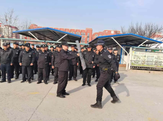 保总公司西青分公司与公安西青分局、西青区教育局,在西青区辛口镇中心小学开展了队列训练、突发事件应对、巡逻技巧、安保防御知识及防暴器械正确使用方法等内容培训,同时强调了与师生、家长沟通的礼仪与规范。培训结束后,进行了应急演练。