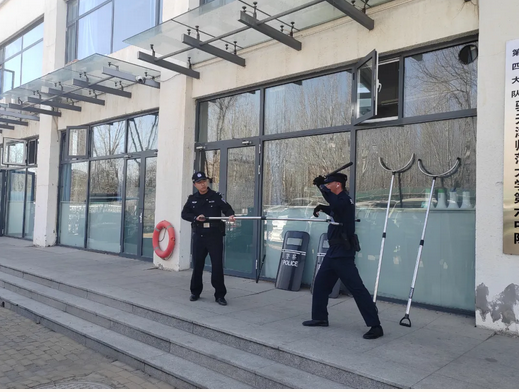 河西分公司第四大队邀请属地民警为驻师范大学保安班40余名保安员,进行了反恐处突培训与应急演练。民警讲解了校园突发事件类型及应对措施,演示了橡胶棍、钢叉等反恐器械的使用方法,并组织队员进行了实战对抗演练。