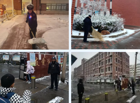 各单位校园保安管理人员闻令而动、靠前指挥,科学划分责任区域、细化作业分工、压实工作时限、全员提前到岗,全力开展扫雪除冰攻坚行动,用最快速度清理出一条安全畅通的暖心通道。“同学,慢一点,小心路滑!”“老师,请这边走,注意脚下”。一句句贴心叮嘱、一句句温馨提醒,化作冬日最动人、最温暖的风景。